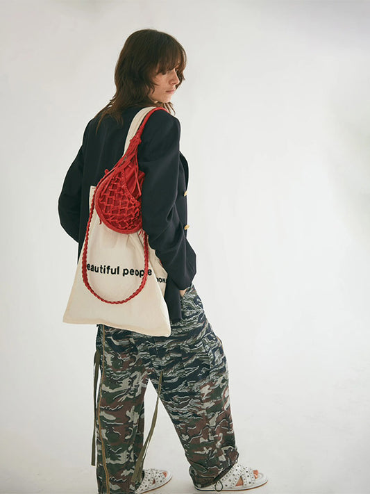 【beautiful people - ビューティフルピープル】brushed logo gathering bag / NAVY(バッグ/ネイビー)