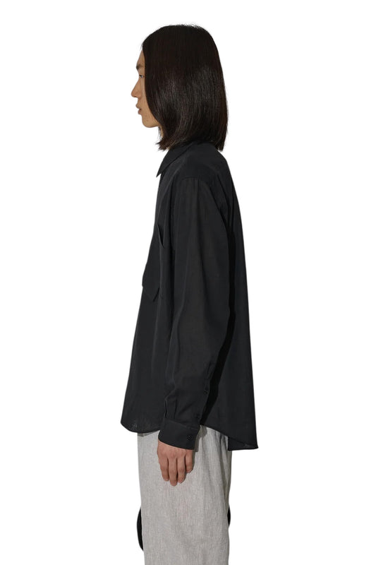 【Y's for men-ワイズフォーメン】CELLULOSE LAWN OPEN COLLAR LEFT POCKET BLOUSE(シャツ/ブラック)