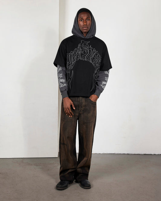 【PLEASURES - プレジャーズ】DRAGON LAYERED HOODIE / FADED BLACK (フーディ/フェードブラック)