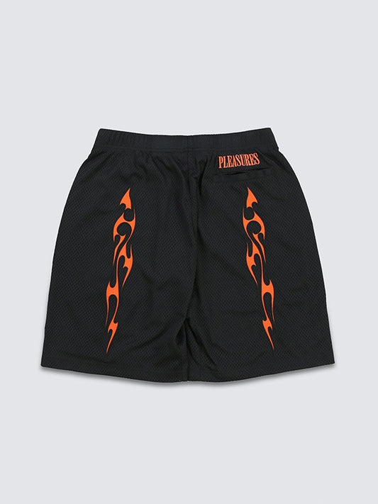 【PLEASURES - プレジャーズ】FLAME MESH SHORTS / BLACK (ショーツ/ブラック)