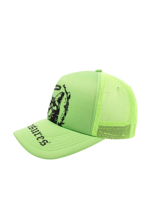 【PLEASURES - プレジャーズ】HOUSECAT TRUCKER / NEON (キャップ/ネオン)