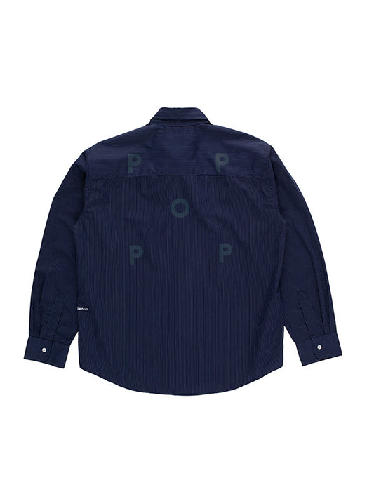 【POP TRADING COMPANY - ポップ トレーディング カンパニー】STRIPED LOGO SHIRT / NAVY (シャツ/ネイビー)