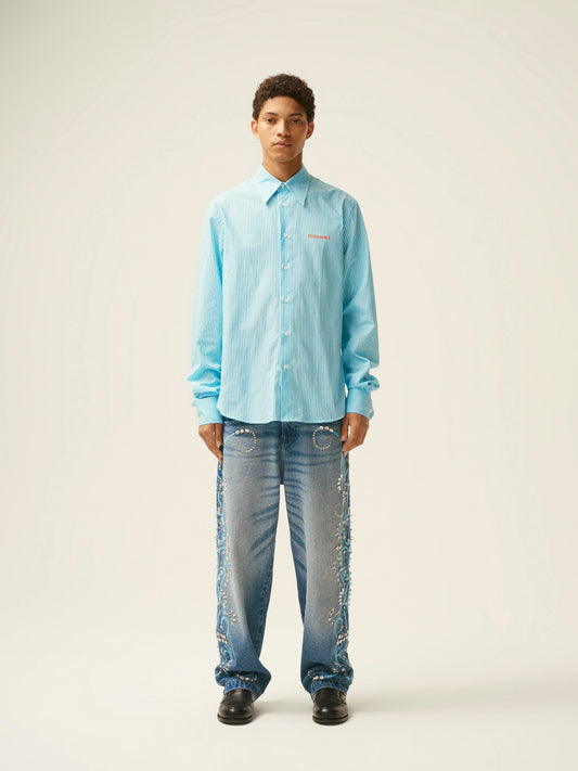 【BLUE MARBLE - ブルーマーブル 】Striped Poplin Shirt / Blue (シャツ/ブルー)