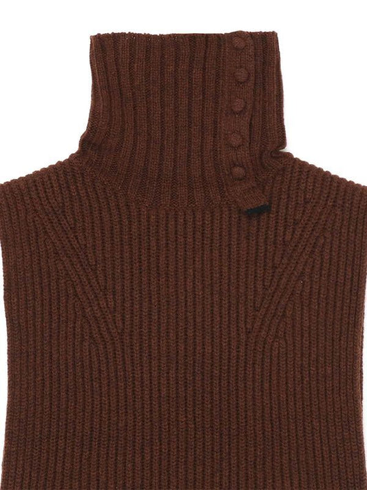 【Y's - ワイズ】BUTTON-UP NECK DETAIL LAMBSWOOL BIB / BROWN (ポンチョ/ベスト)