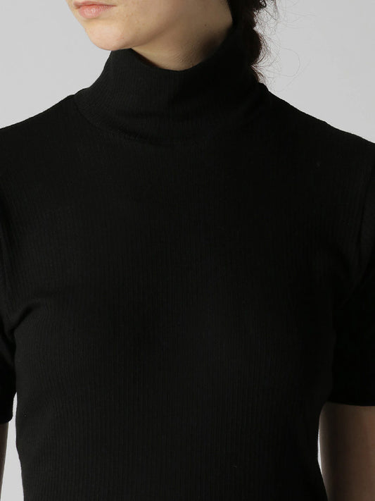 【Y's - ワイズ】HIGH NECK HALF SLEEVE RIB T-SHIRT / BLACK (Tシャツ/ブラック)