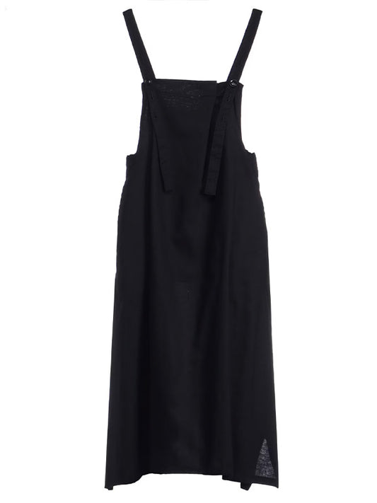 【Y's - ワイズ】Y's BORN PRODUTTHIN COTTON TWILL FRONT TUCKED SHOULDER STRAP DRESS / BLACK (ドレス/ブラック)