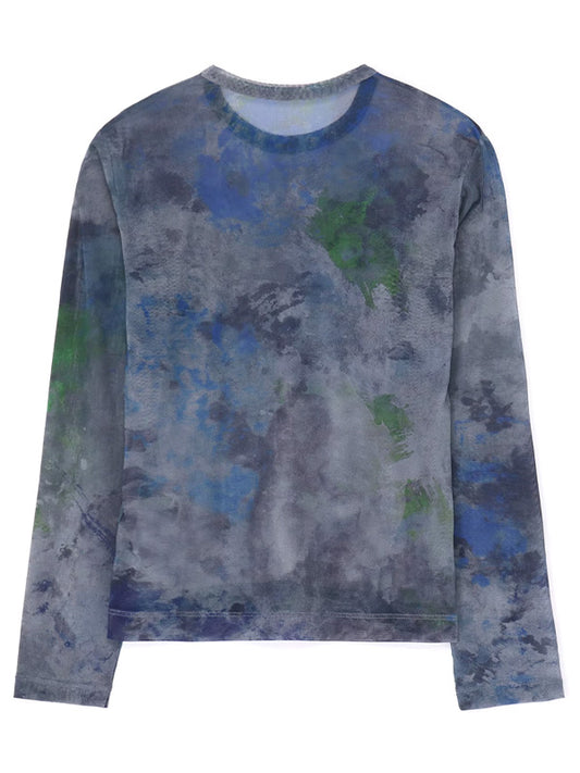 【Y's - ワイズ】PE TULLE PAINT DESIGN ROUND NECK LONG SLEEVE T/GREY (カットソー/グレー)