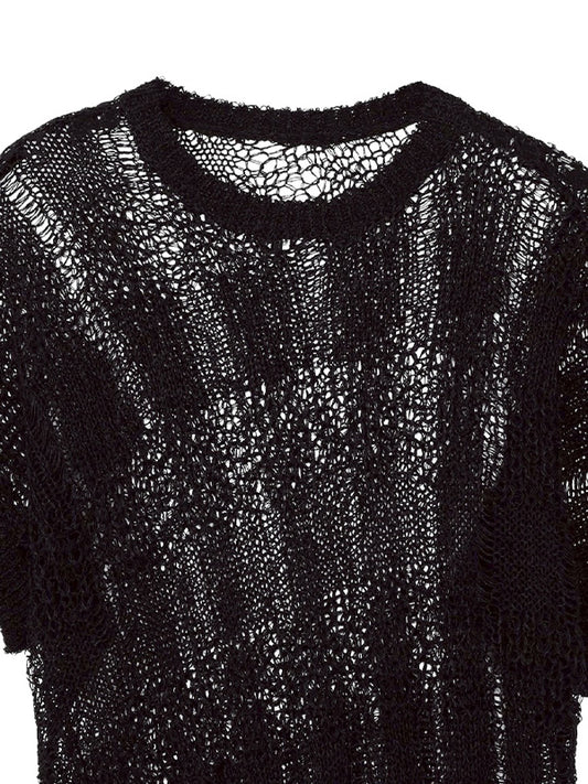 【Y's - ワイズ】PLAID LOOSE-KNIT ASYMMETRIC DRAPE PULLOVER / BLACK (プルオーバー/ブラック)