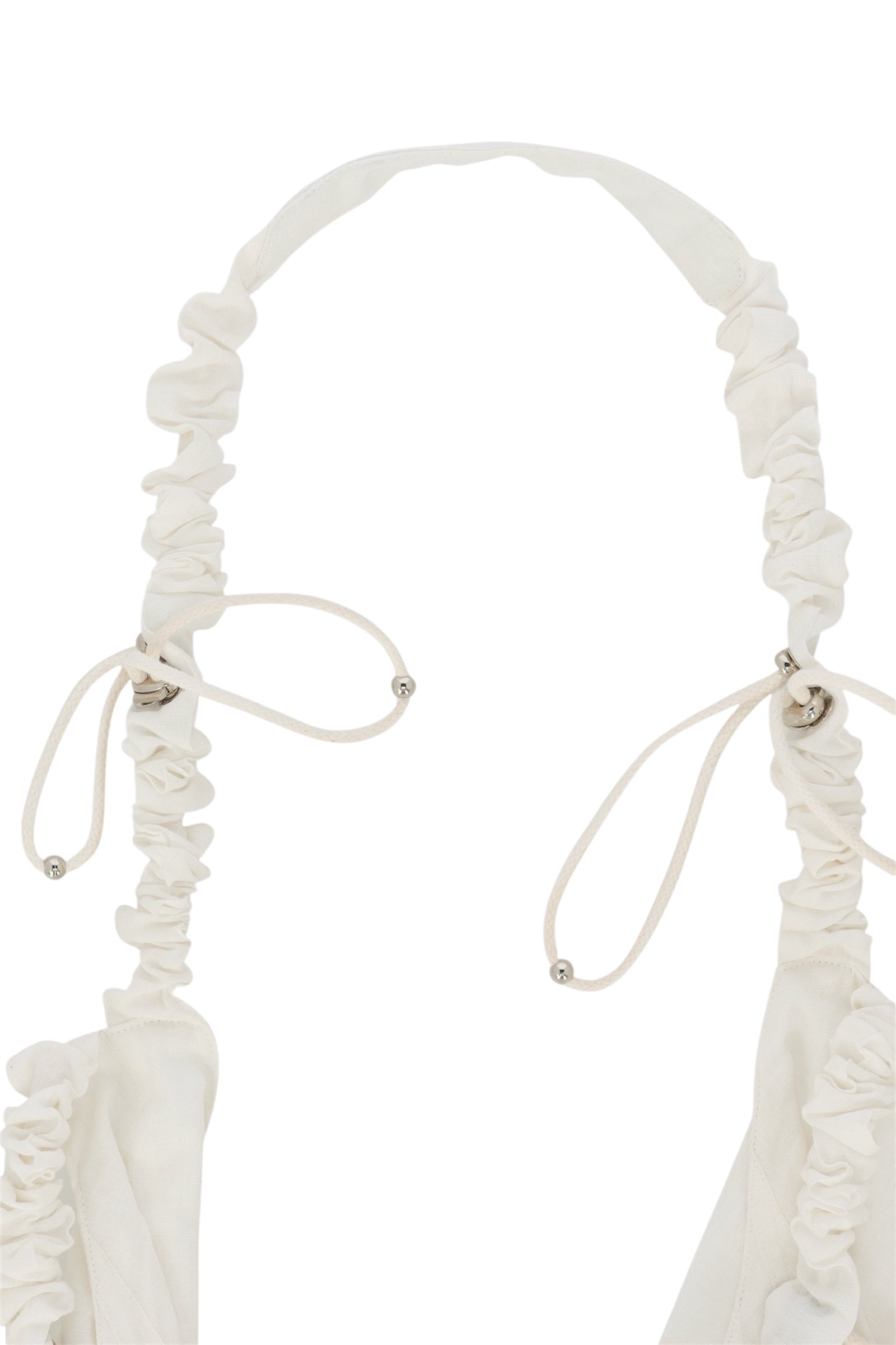ルーシュ加工が施されたパッド入りのショルダーストラップが2本付いています。