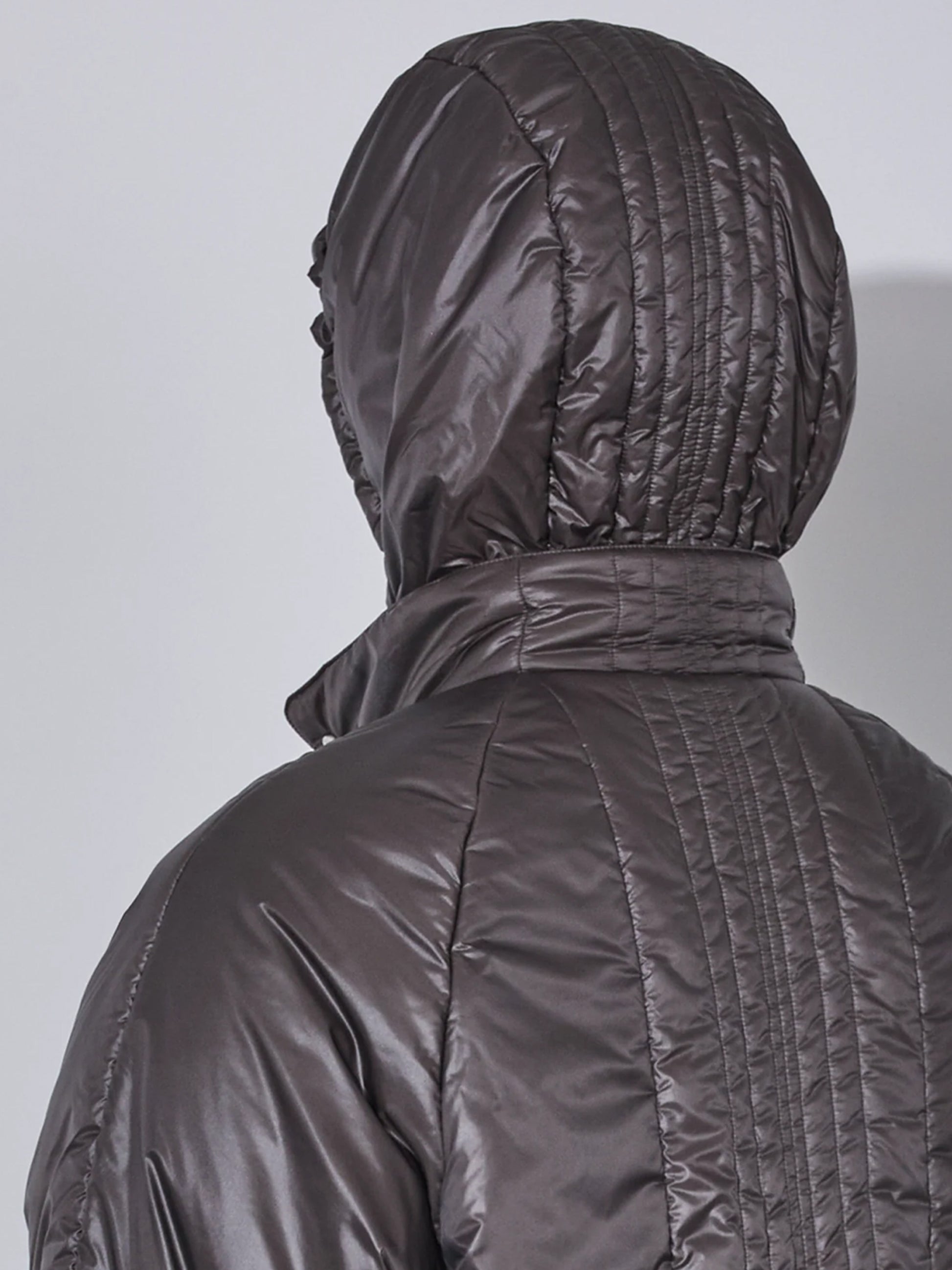 伸縮性のあるフード開口部でフィット感を調節できます。