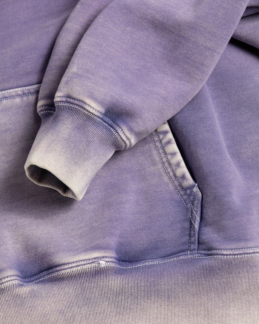 本来、反応染料を使用した生地を脱色すると変色することがありますが、特殊な加工より長く着古したような自然な色落ちを表現。