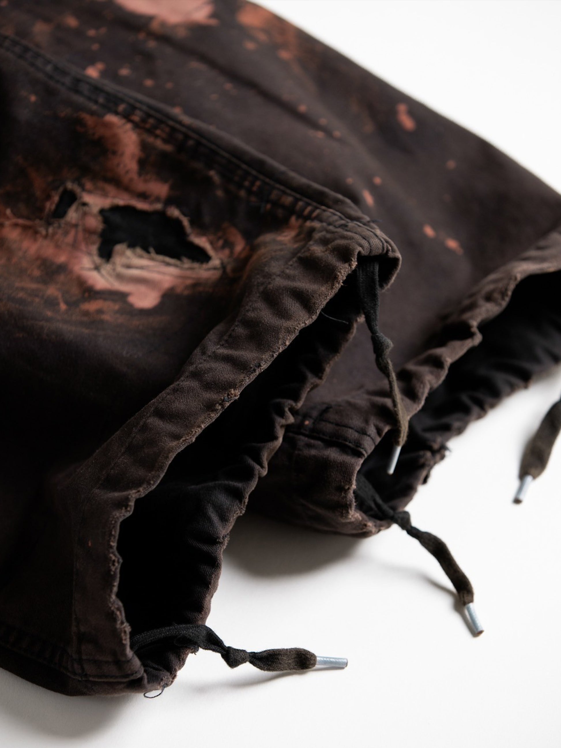 手作業によるハードなブリーチ加工を施し、随所でダメージ加工を加え、