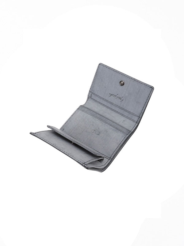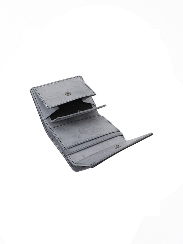 コンパクトで持ち歩きしやすいサイズの三つ折りウォレット。お札、小銭、カードを効率的に収納できます。素材には、イタリアのブライドルレザーを使用しています。表面の白はワックスが表面に浮き出ている状態です。ブライドルレザーは馬具用の革として開発された耐久性に優れており、日頃のメンテナンスが余り無くとも革自体は長持ちします。経年変化を楽しんでご使用いただけます。メンテナンスを行う場合は、蜜蝋ワックスをクロスやハギレなどに取り、薄く延ばす様に塗り込んでください。表面にザラつきが感じられる際は、革下層部の繊維層に浸透する様にクリーム又はオイルを塗布してください。