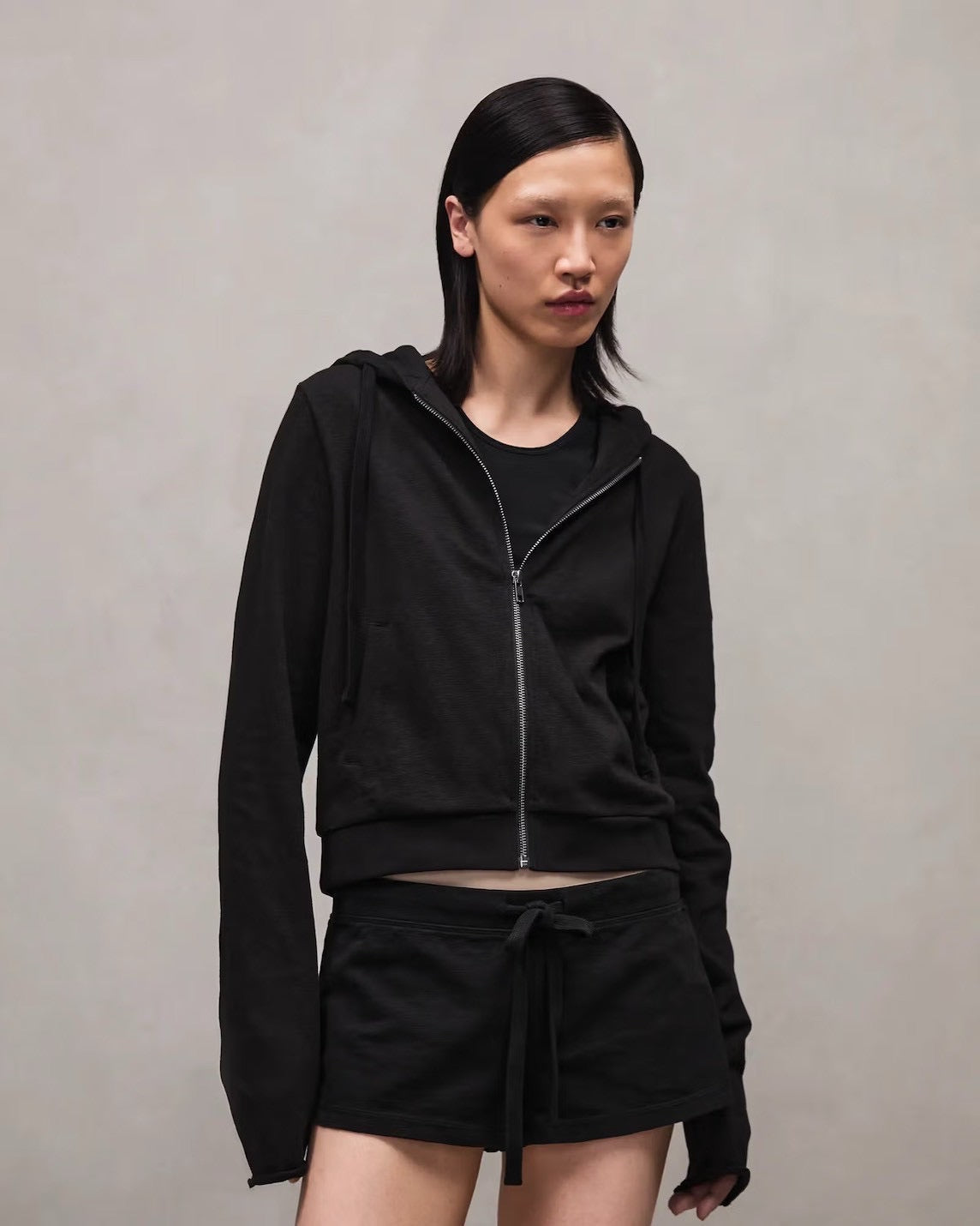 【entire studios - エンタイアスタジオ】LIGHTWEIGHT CROPPED ZIP-UP / BLACK (パーカー/ブラック)