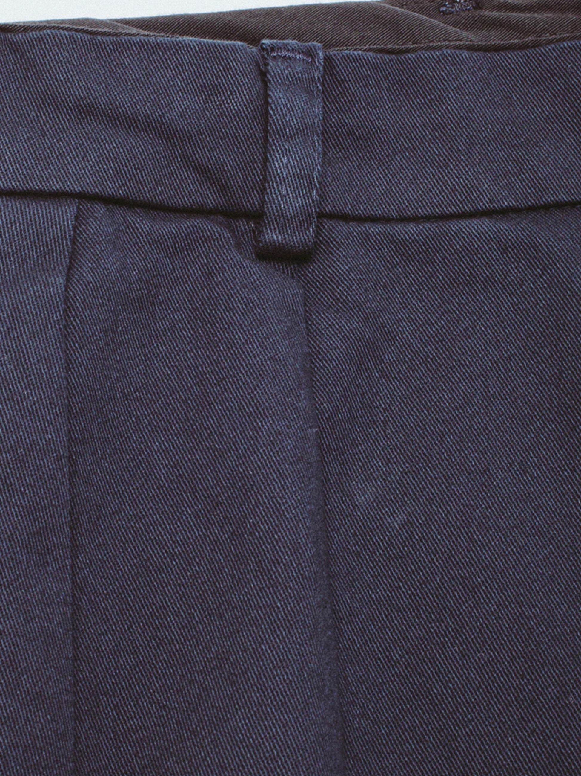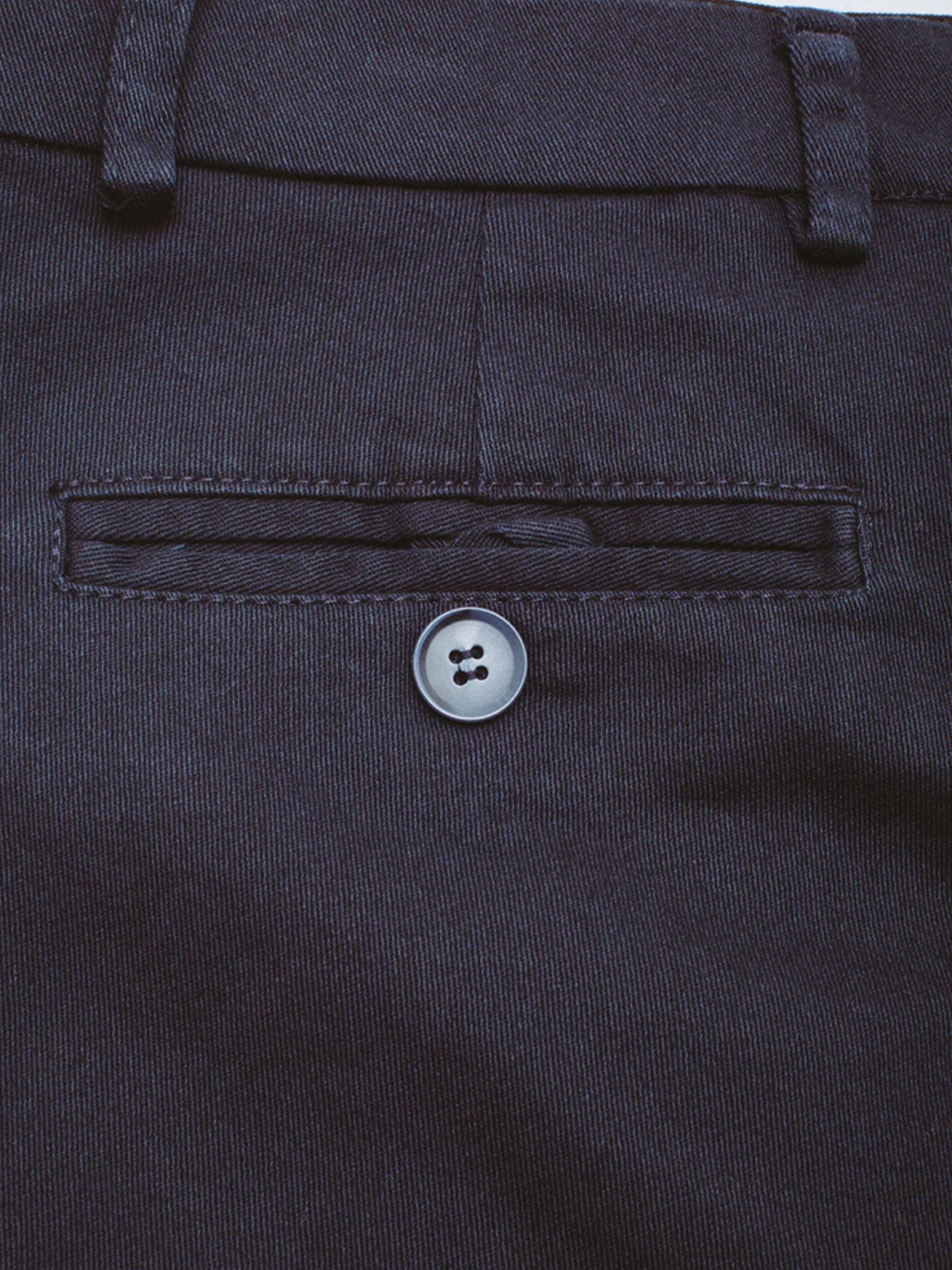 フロントにスラントポケットが2つ、バックにボタン留めのウェルトポケットが2つ付いています。