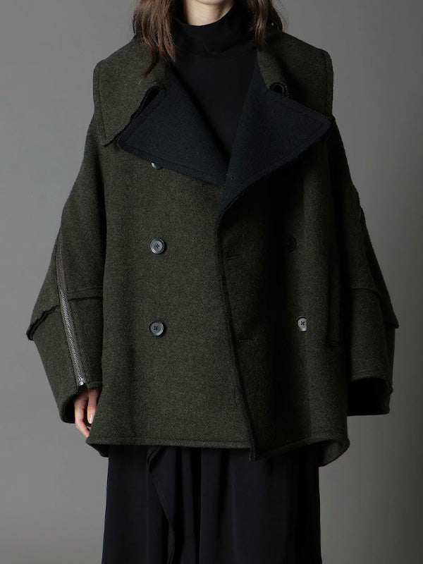 【Ground Y - グラウンドワイ】DOUBLE WEAVE MELTON SHORT LENGTH BIG SLEEVE DOUBLE COAT / KHAKI (コート/カーキ)