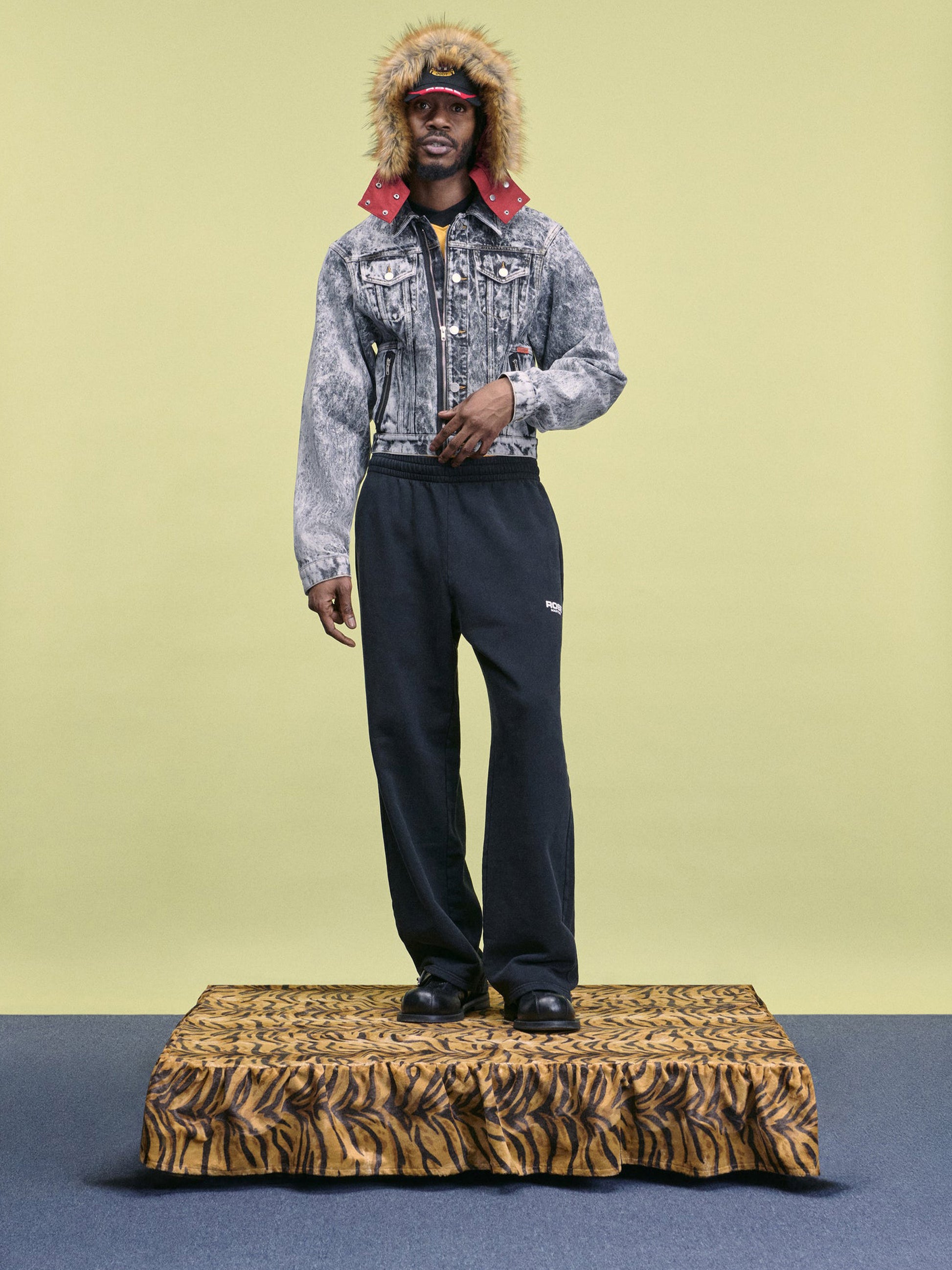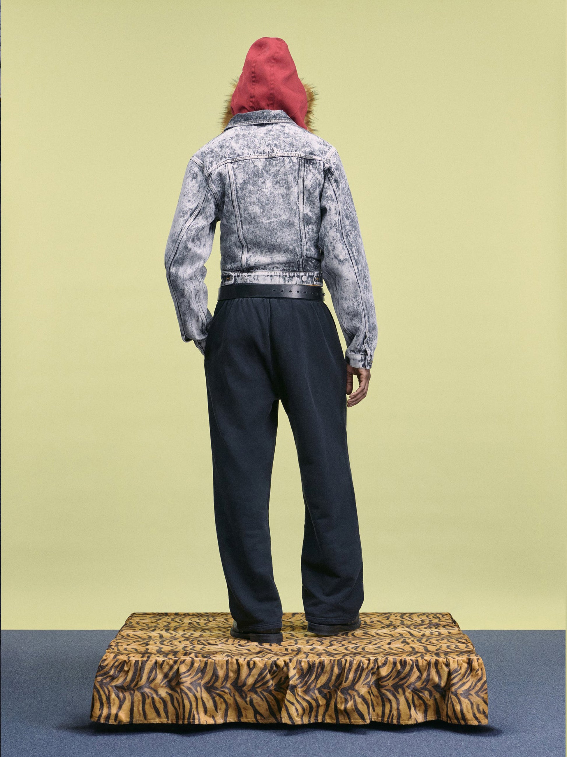 ワープニットジャージーを使用したエクストラワイドなトラックパンツ。