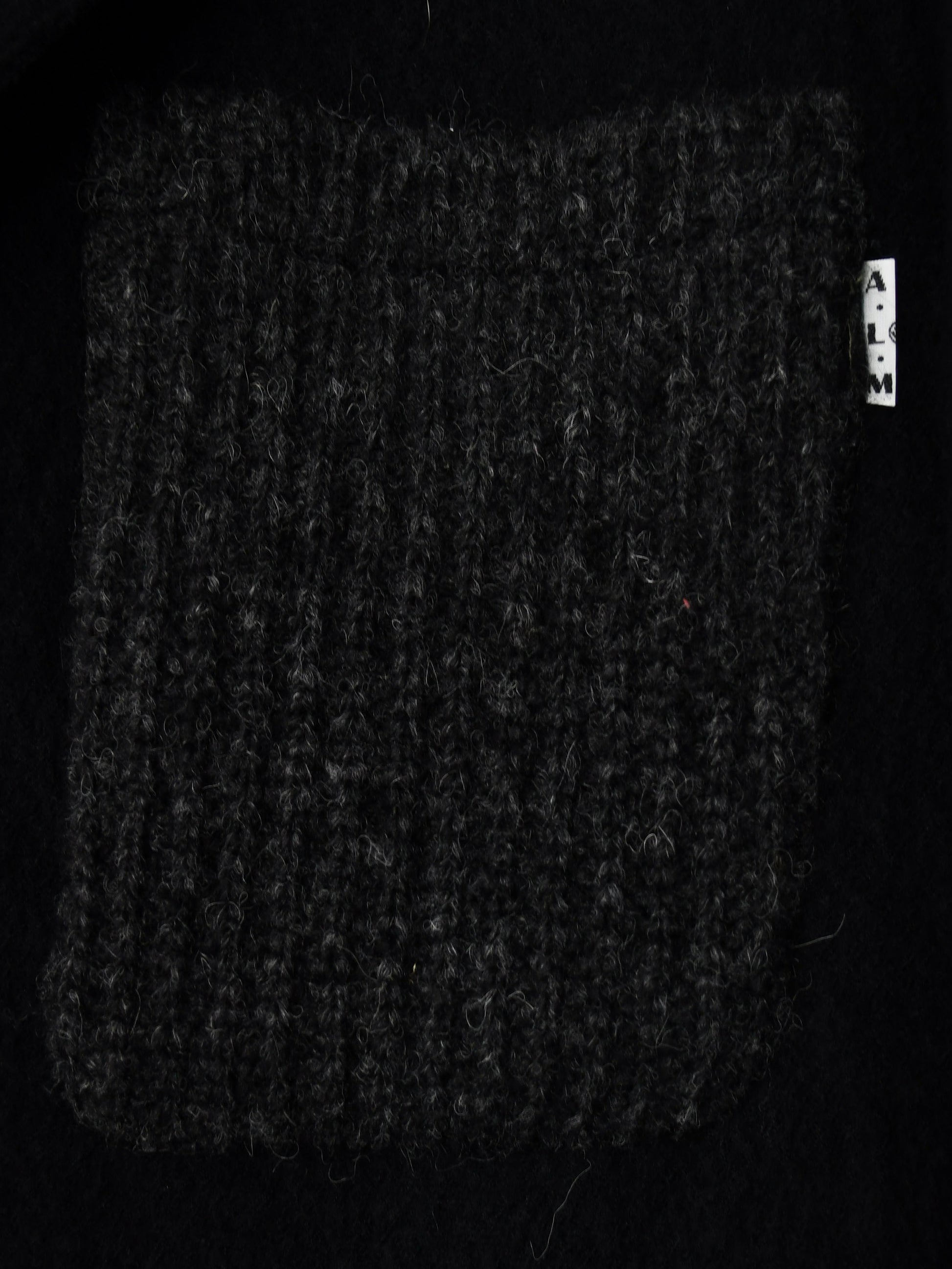 世界中からALMに集まるニットの試網見本や生地見本を一枚ずつ解体し可愛らしいポケットに形成。風合いある縮絨ジャケットに一点一点取り付けています。サイズ&ポケットの色を併せてご確認のうえご検討下さい。