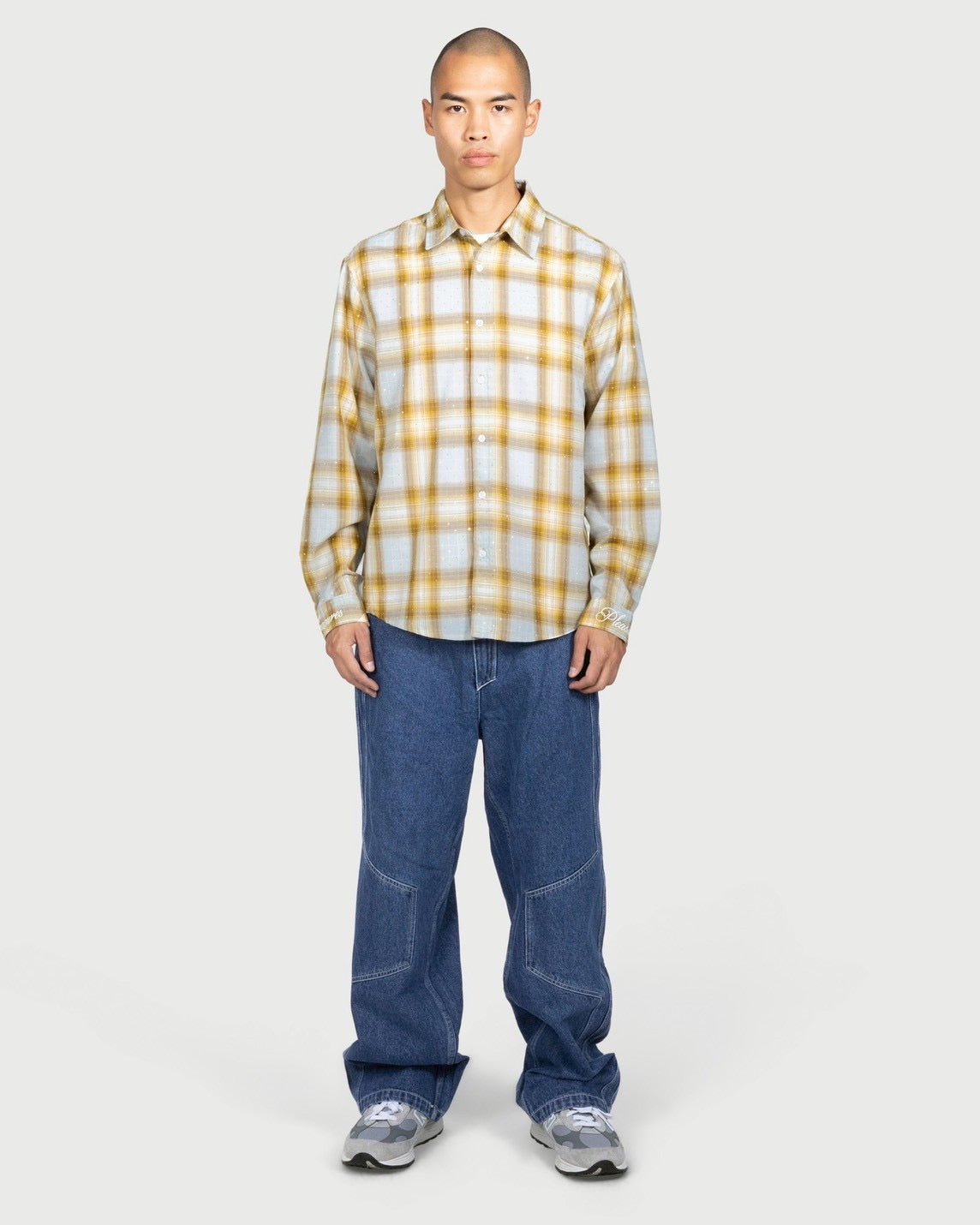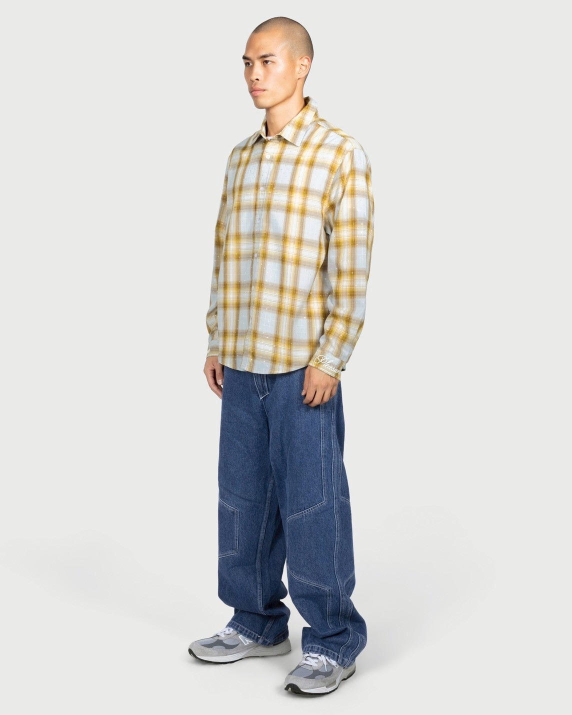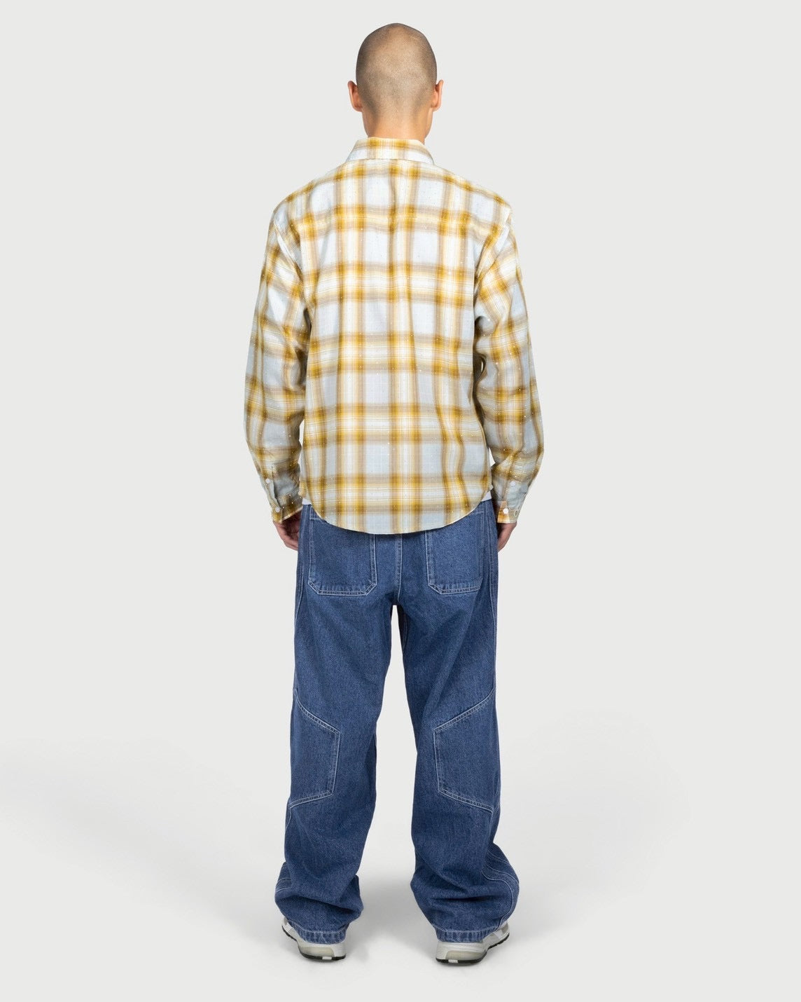 ボディー全体にラインストーンが散りばめられたチェックシャツになります。