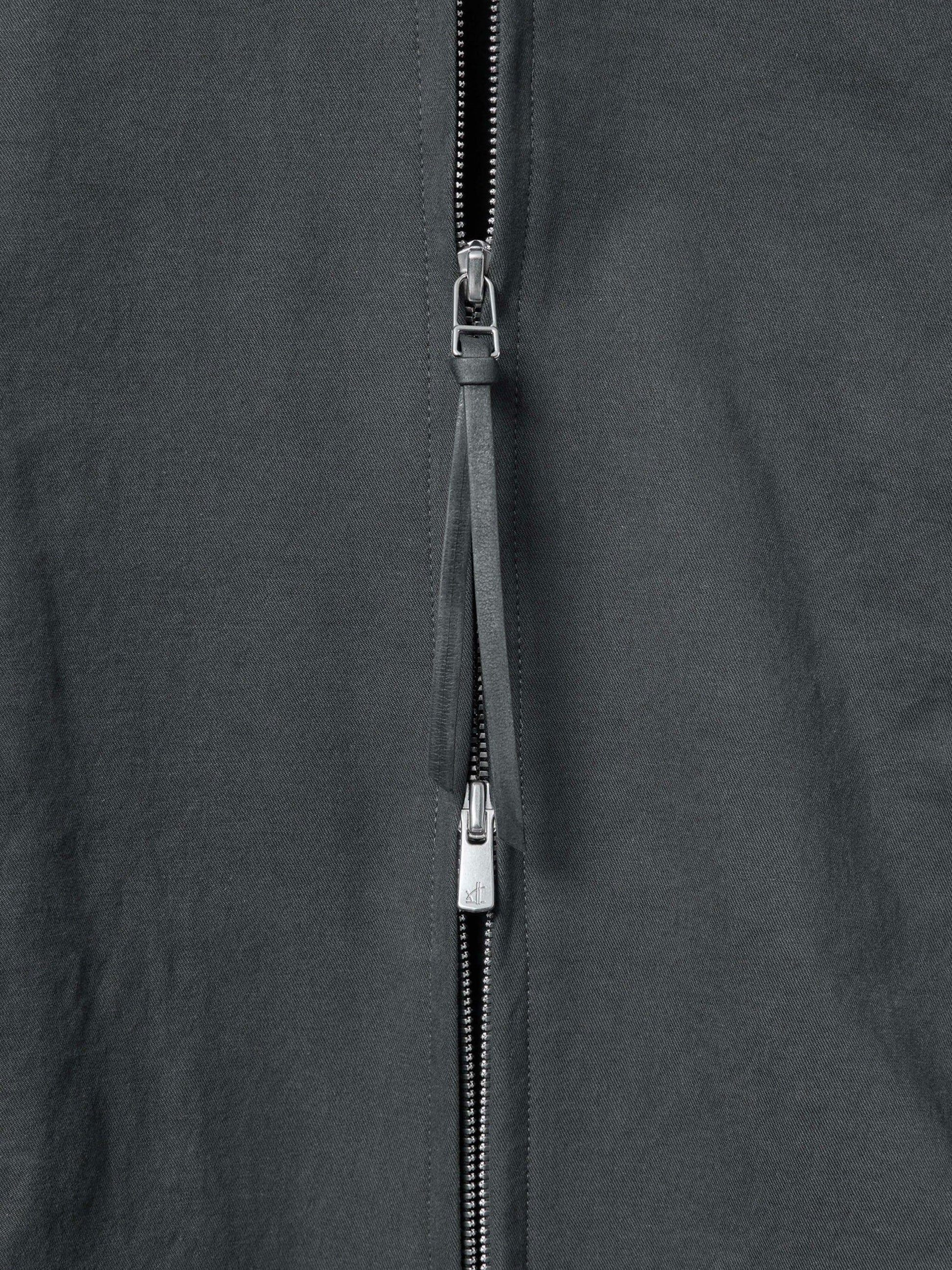 フロントは両開きジッパー開閉となっており様々なスタイリングが可能
