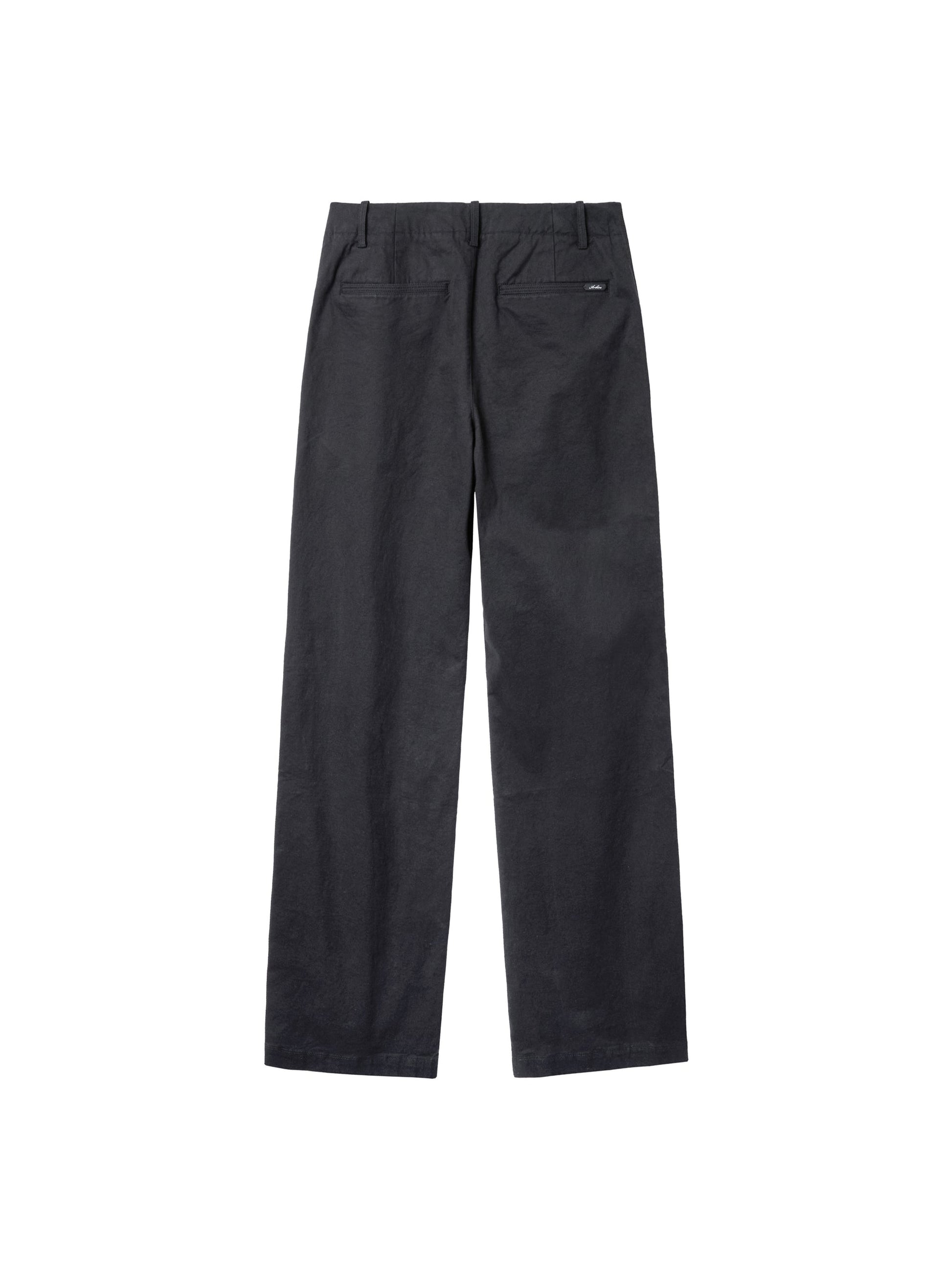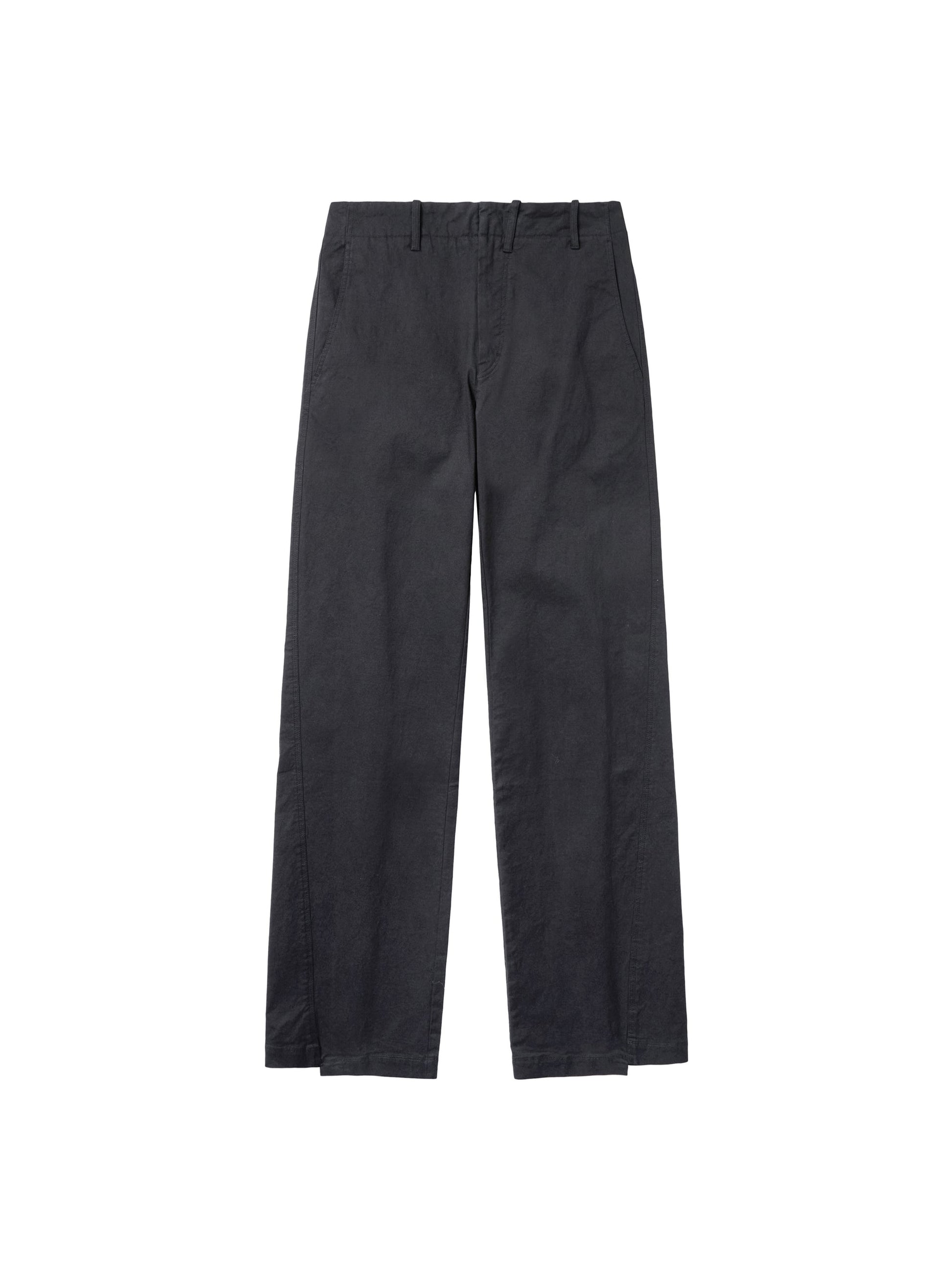 ガーメントウォッシュ加工されているストレートシルエットパンツ。