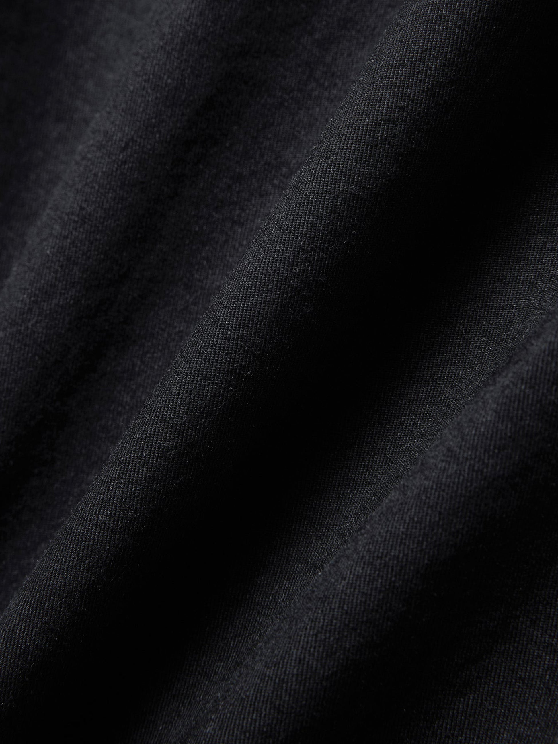 裾部がアシンメトリーになっておりシンプルながら様々な履物に対応できる仕様に。