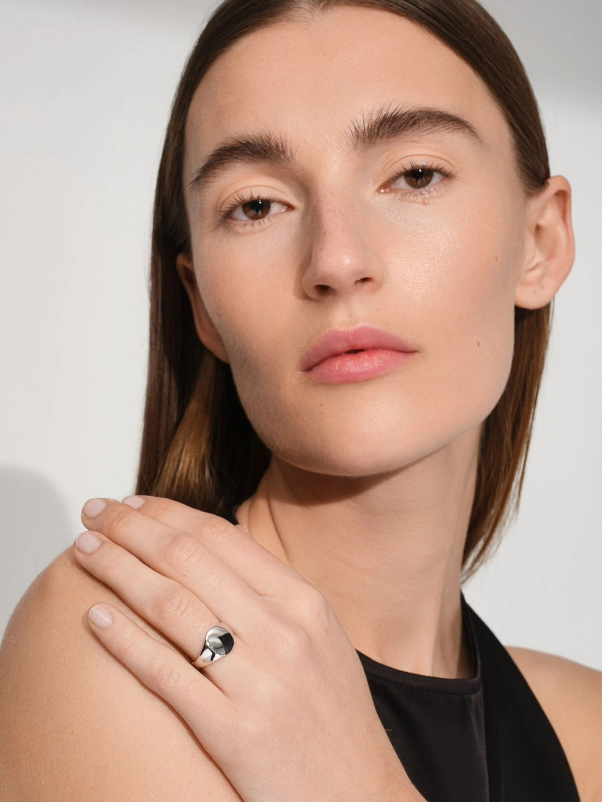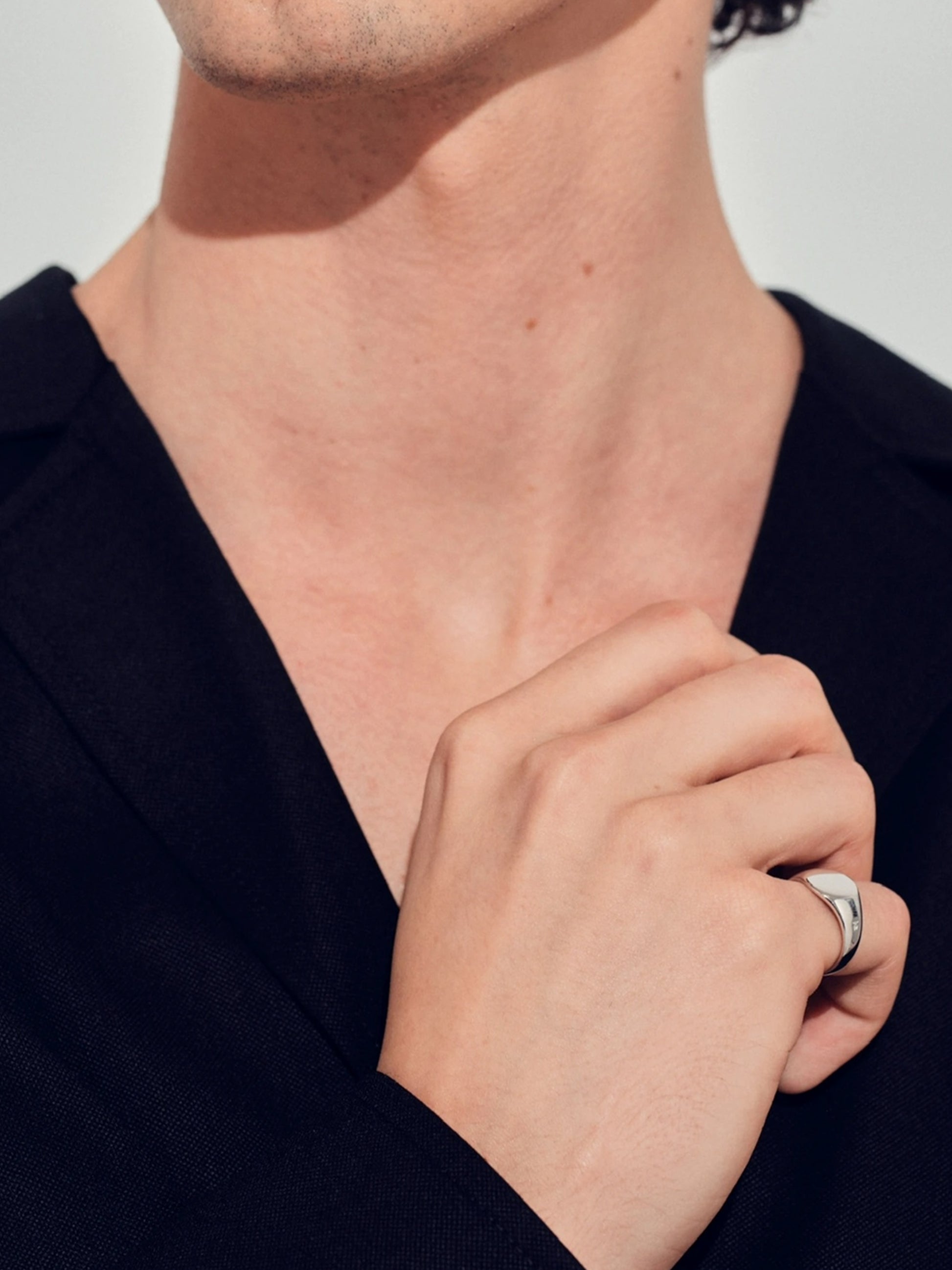ミニ・シグネット・オーバルは、クラシックなオーバル・シグネットリングをプチサイズにしたものです。単体でも着用できますが、他のトムウッドのリングと合わせればより大胆な印象になります。