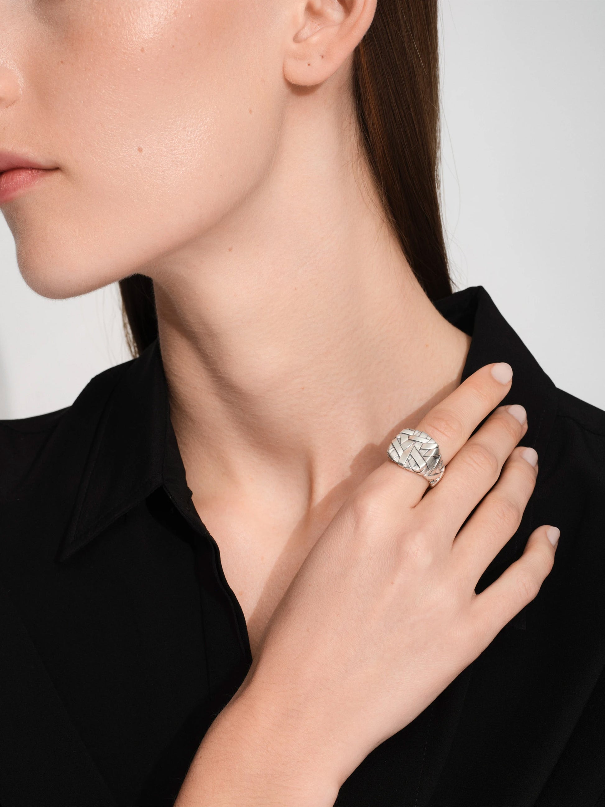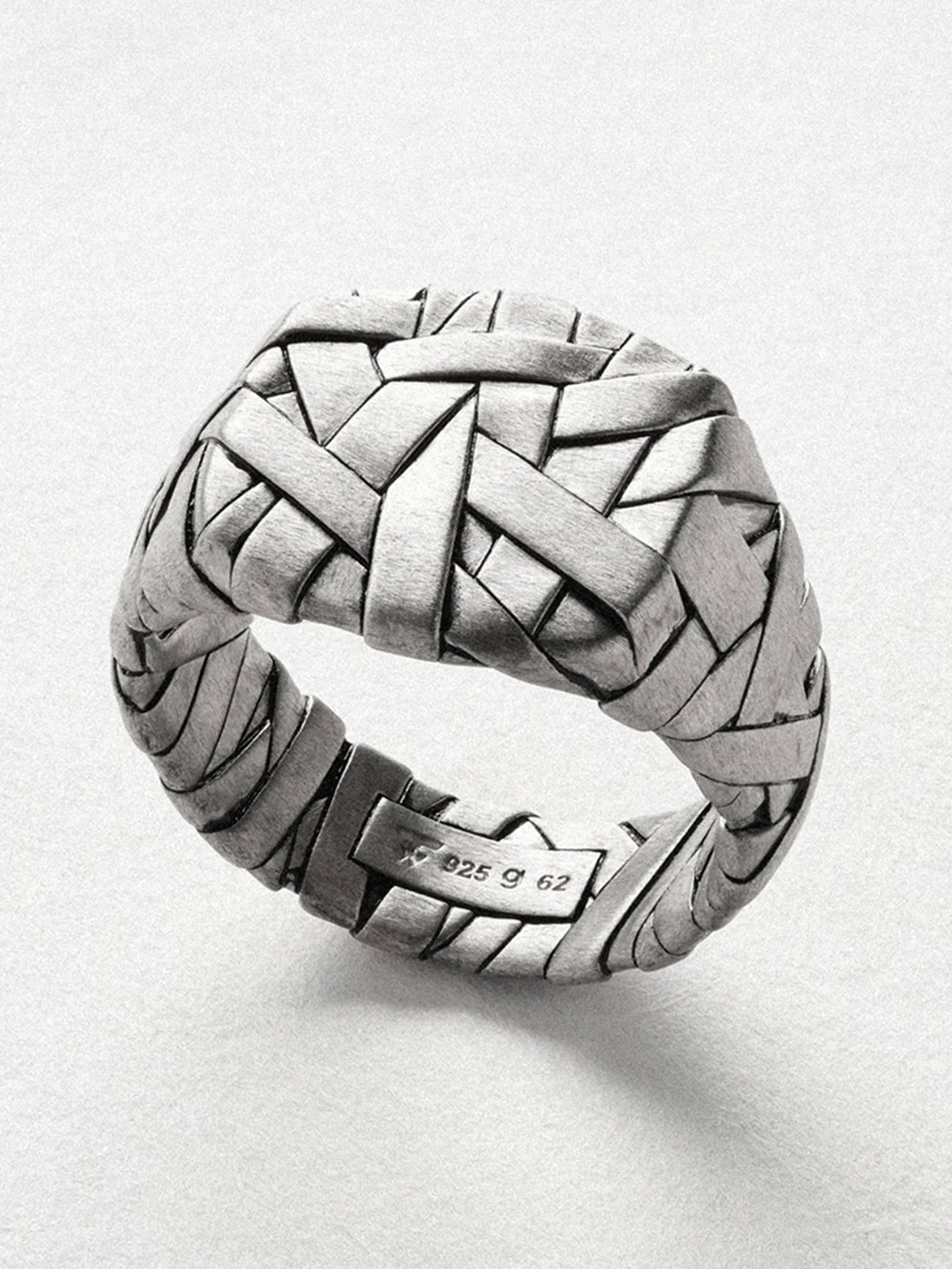 キルトリングは、クラシックなクッションリングを革新的にアレンジしたリングです。サテン仕上げの織り模様が深みと質感を添えています。手作業と最新技術の融合により誕生しました。