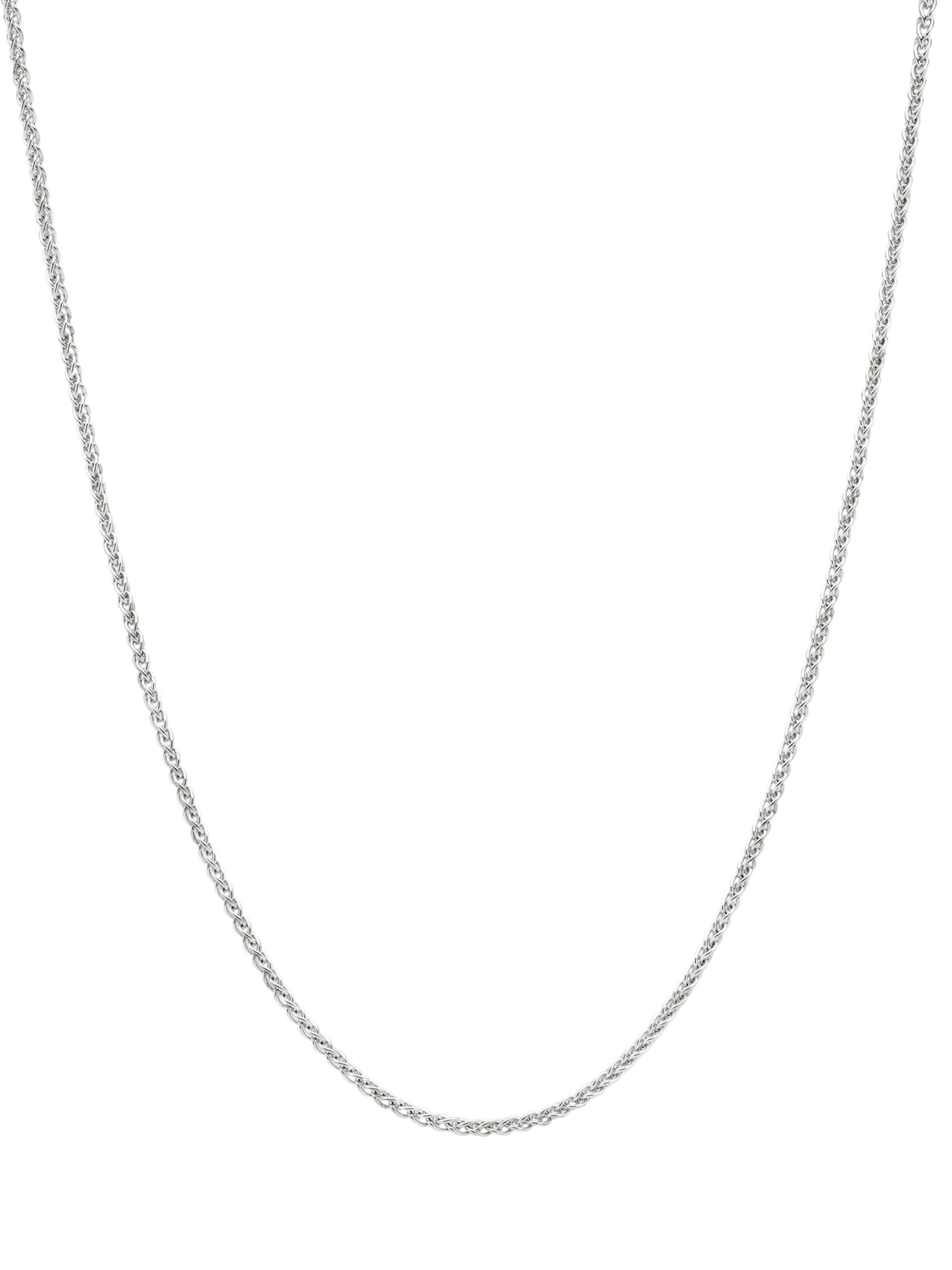 このチェーンはポリッシュ仕上げのスターリングシルバー925製で、表面を強化し変色を防ぐためにホワイトロジウムプレーティングが施されています。
