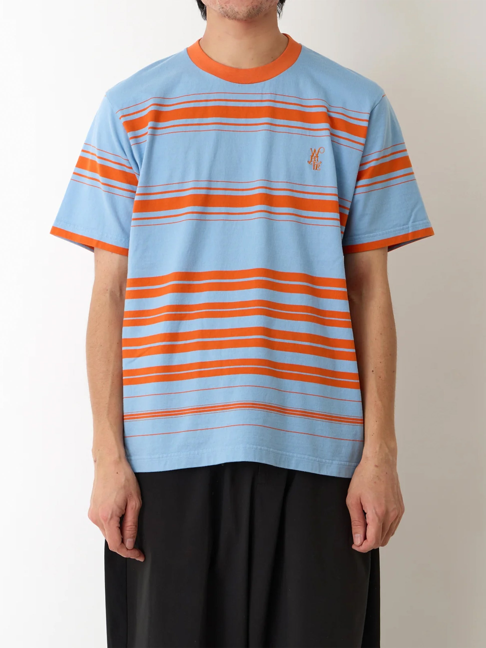【White Mountaineering - ホワイトマウンテニアリング】RANDAM STRIPE LOGO T-SHIRT / SAX (Tシャツ/サックス)