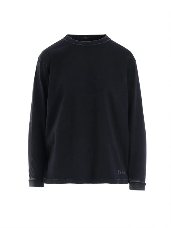 【Y's - ワイズ】7.4OZ COTTON JERSEY SULFUR-DYED LONG SLEEVE TEE / BLACK (Tシャツ/ブラック)