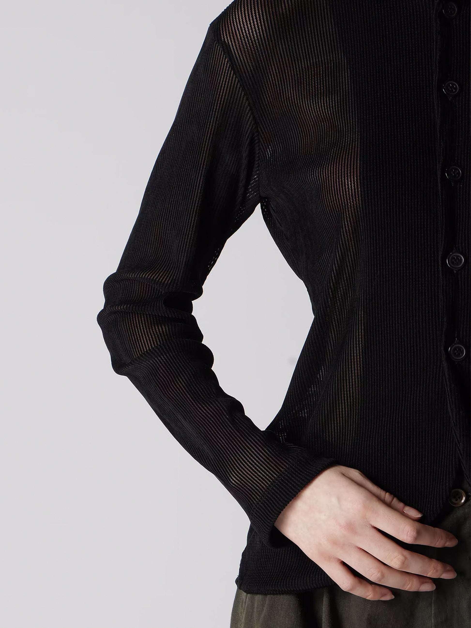 【Y's - ワイズ】NY TULLE FLOCKED ROUND COLLAR CARDIGAN / BLACK(カーディガン/ブラック)