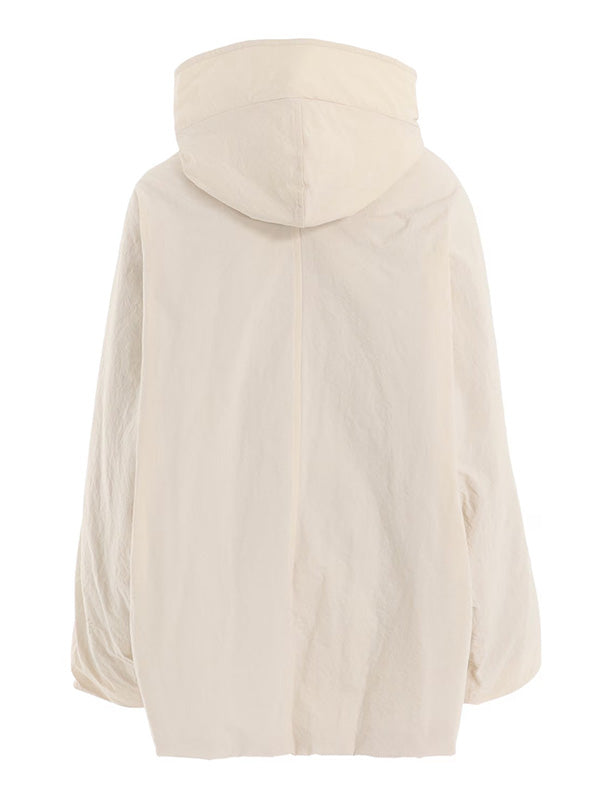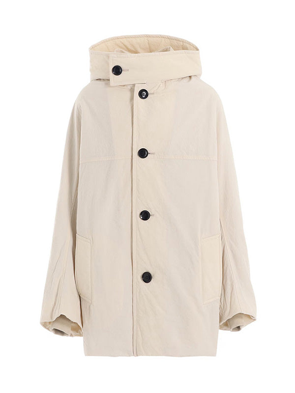 マットな風合いに仕上げたフード付きコート。